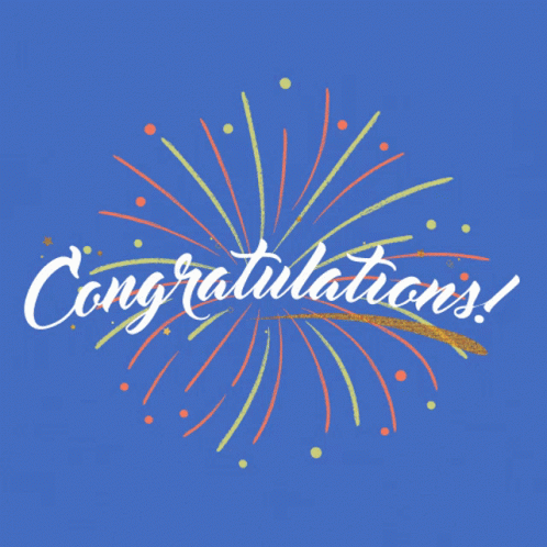 Animated congratulations message with colorful fireworks and EDR Defenders logo, celebrating success.