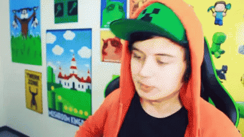 Eeoneguy (Ivan Rudskoy) looking angry and intense, wearing an orange hoodie and a green Minecraft hat.