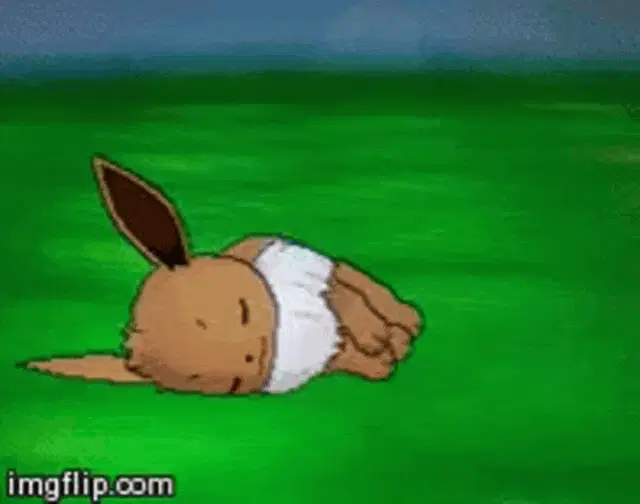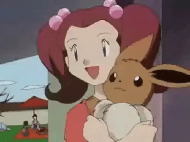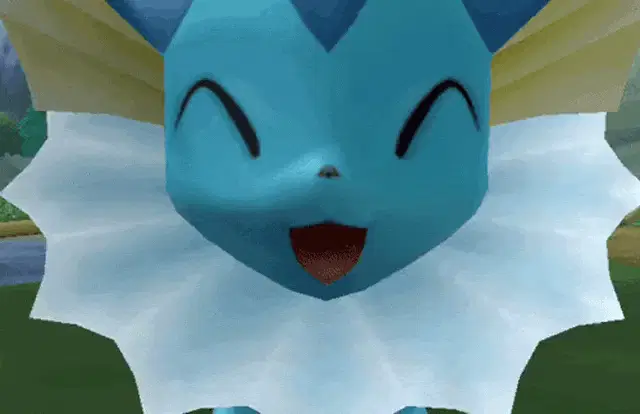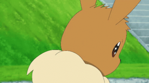 A close-up of a cute, smiling Eevee from Pokémon with sparkling eyes and rosy cheeks.