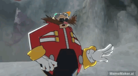 Dr. Eggman from Sonic the Hedgehog stands dramatically in his iconic red jacket and goggles.