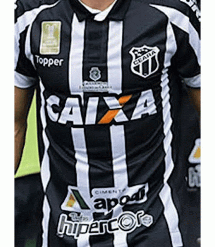 A collection of Ceará Sporting Club football jerseys, featuring various sponsors and designs over the years.