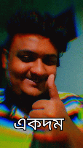 A man gives a thumbs up gesture with the Bengali word 'Ekdom' displayed on screen.