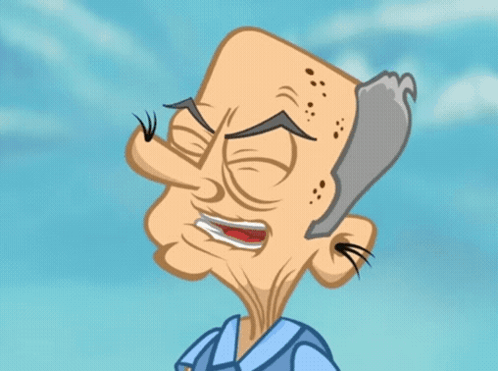 A cartoon old man from El Abuelo Del Barrio laughs with a mischievous expression.