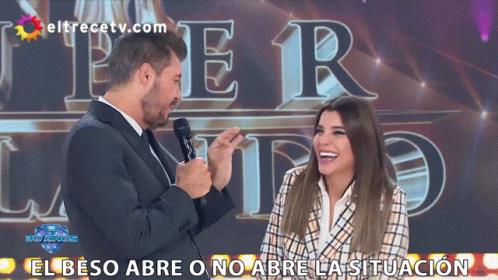 Marelo Tinelli discusses whether a kiss opens or closes a situation with a laughing woman on eltrece.