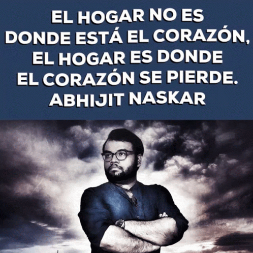 Abhijit Naskar's quote: 'Home is not where the heart is, home is where the heart is lost.' Man with crossed arms.