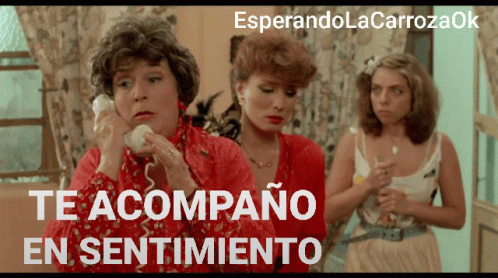 A memorable scene from 'Esperando La Carroza' featuring a woman on the phone, uttering the iconic phrase 'Te Acompaño En Sentimiento'.