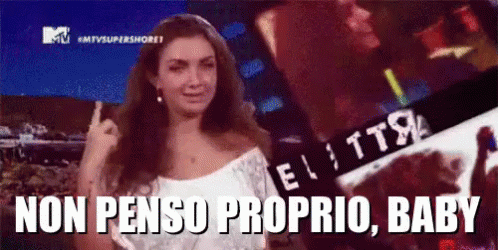 Elettra Lamborghini makes a dismissive gesture with the text "Non Penso Proprio, Baby" (I Don't Think So, Baby) from MTV Super Shore.