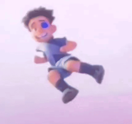 Elio from Pixar's Elio floating in the air, smiling with a glowing blue eye and waving.
