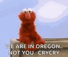 Elmo from Sesame Street slowly hides behind a ledge with the caption 'WE ARE IN OREGON.. NOT YOU CRYCRY'.