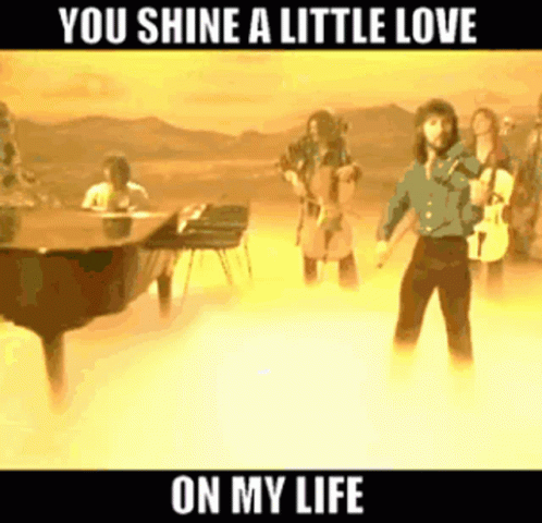 ELO and Jeff Lynne perform "Shine A Little Love" in a classic music video, surrounded by golden light.