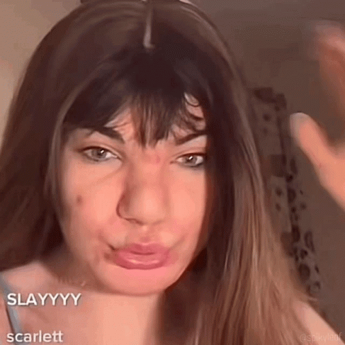 Elphaba Doherty makes funny faces and exaggerated mouth movements in a close-up video, featuring various text overlays.