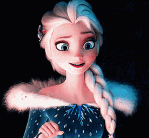 Elsa from Disney's Frozen, smiling with her iconic braided hair and blue dress.