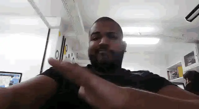 Elton G speaks directly to the camera, smiling and saying "Com toda linda!".