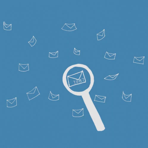 An animation of a magnifying glass searching through numerous envelopes, highlighting a specific email.