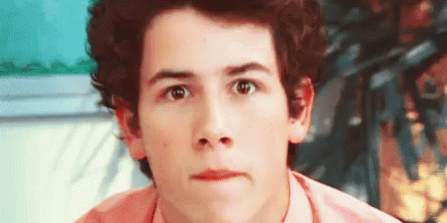 Nick Jonas shows a surprised and embarrassed expression in a close-up shot.