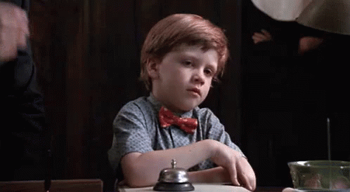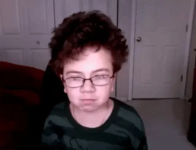 Michael Oliver as Junior from Problem Child does an embarrassed facepalm at a table.