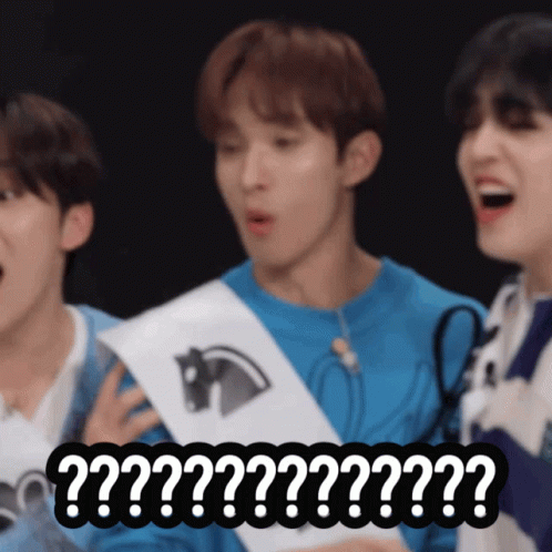 Seventeen's DK (Dokyeom) shows a surprised and confused reaction with question marks overlayed.