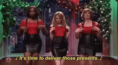Emma Stone and two other women sing about delivering presents in a festive Christmas sketch.