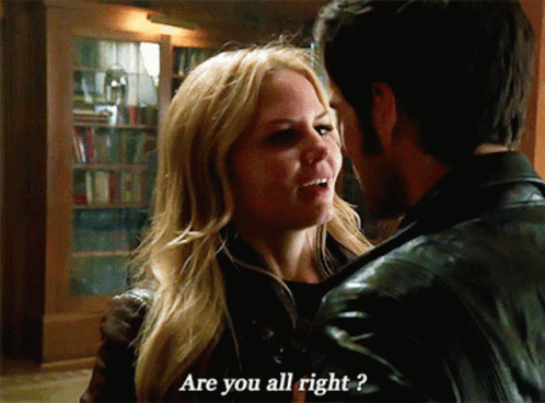 Emma Swan (Jennifer Morrison) asks a man, 'Are you all right?' in a tender moment from Once Upon A Time.
