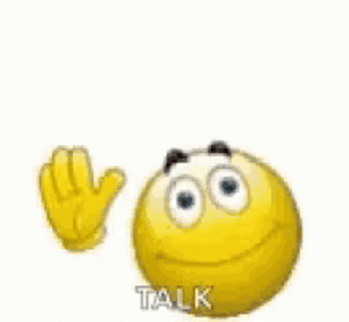 A cheerful yellow emoji waves goodbye with a speech bubble saying 'Bye!' and 'TALK' below.