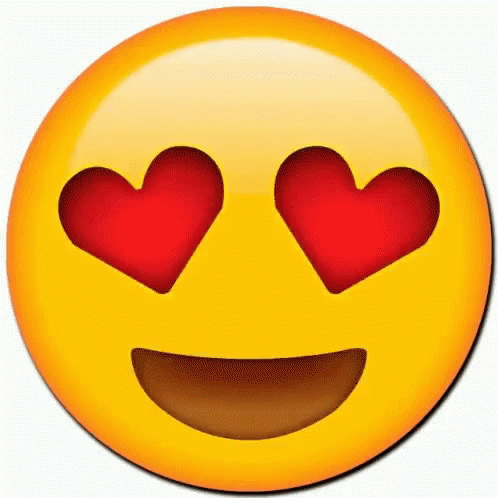 A vibrant yellow emoji with heart eyes spins, expressing love and affection.