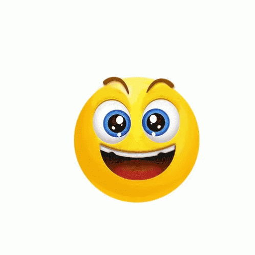 A yellow emoji transitions from a wide smile to blowing a kiss with hearts, then back to smiling.