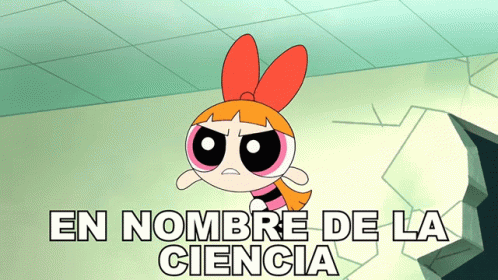 Blossom from Powerpuff Girls yells 'In the Name of Science!' with an angry and determined expression.
