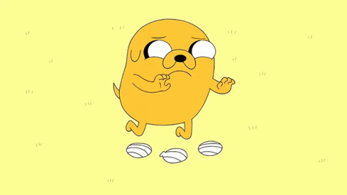 Jake from Adventure Time runs happily, then looks concerned as 'En Serio' appears on screen.