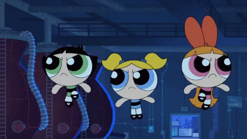 Blossom, Bubbles, and Buttercup of The Powerpuff Girls are blinded by a bright light.