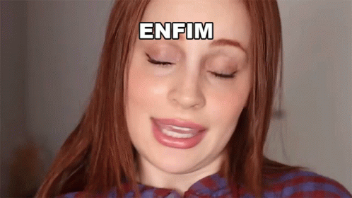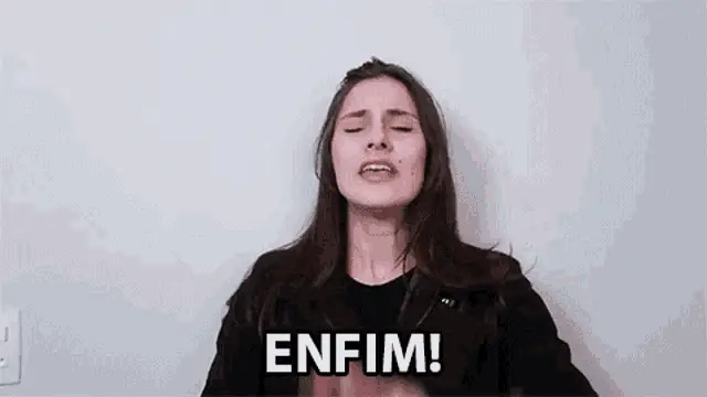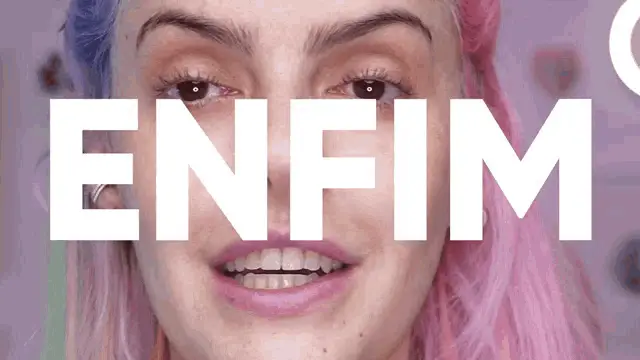 Li Melchert speaks directly to the camera with the caption 'Enfim' (Finally) displayed above her.