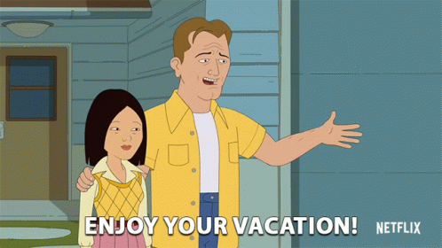 Chet Stevenson and Nguyen Nguyen Stevenson wave goodbye, wishing you to enjoy your vacation.