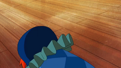 Angry Gwen from Ben 10 in a blue jester outfit, looking upset with a furrowed brow on a wooden floor.