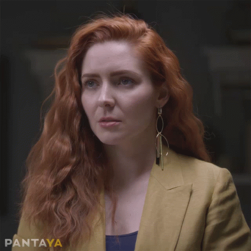 Ariadne Diaz as Sam, looking angry with red hair and a yellow jacket.