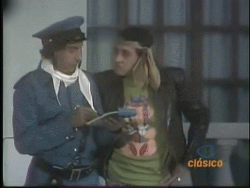 Gacho Nacho and Vulgarcito from Ensalada De Locos in a funny interaction, one dressed as a cop.