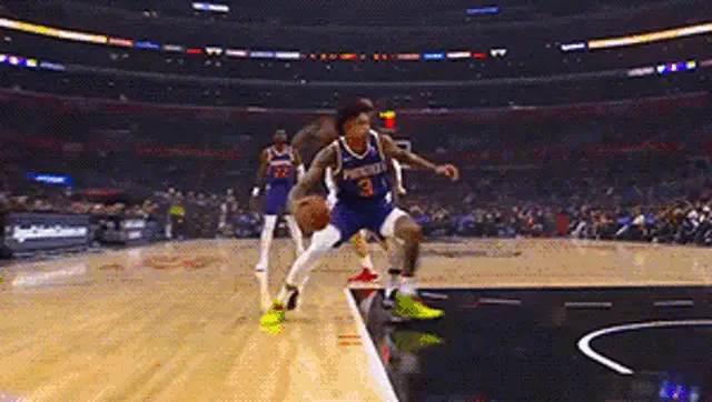 A basketball player executes a powerful and perfect dunk during a Novo Basquete Brasil game.