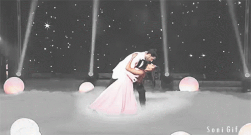 Erica Fernandes and Parth Samthaan share a romantic dance on stage, bathed in starry lights.