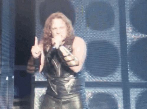 Eric Adams, lead singer of Manowar, performs live on stage, singing into a microphone.
