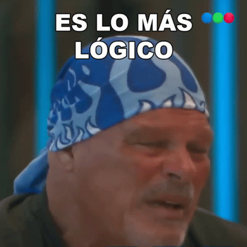 A man from Gran Hermano (Big Brother) expresses a logical thought, wearing a distinctive blue bandana.