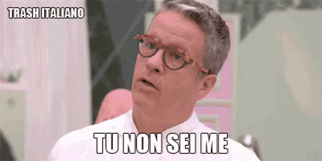 Louis De Funes with a serious expression, saying the German phrase 'Es wird ernst' (It's getting serious).