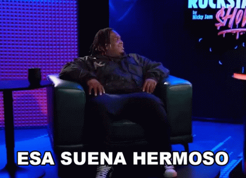 Sech reacts to music with 'Esa Suena Hermoso' on Nicky Jam's Rockstar Show, expressing delight.