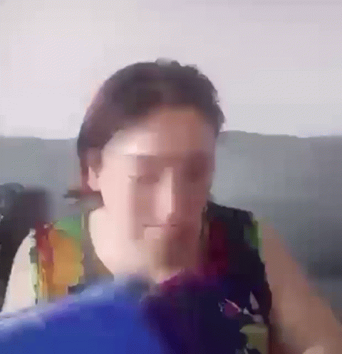Escritora Sabeonda looking down, wearing a colorful floral top.