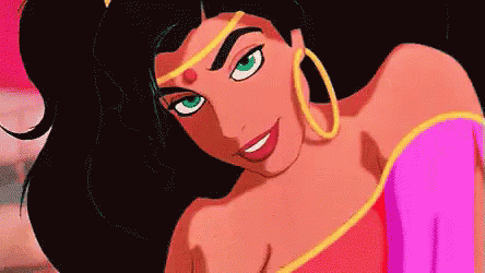 Esmeralda from Disney's The Hunchback of Notre Dame winks and says 'Sueña Conmigo' (Dream with me).