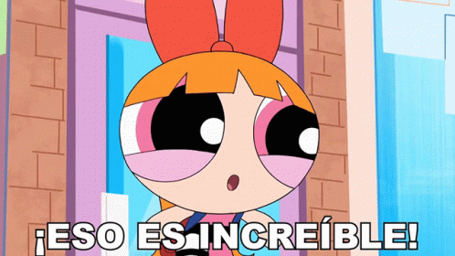 Blossom from The Powerpuff Girls animated series expresses her excitement, exclaiming '¡Eso Es Increíble!'