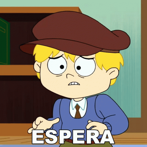 Cartoon boy in a hat and tie looks surprised with 'Espera' (Wait) text, referencing The Powerpuff Girls.