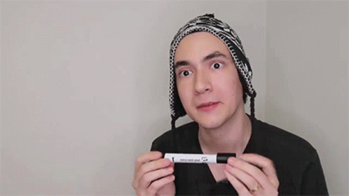 Gabriel Dearo, wearing a patterned hat, looks anxious and excited while holding a marker.