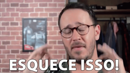 A man in glasses gestures dismissively with the text 'Esquece Isso!' (Forget It!) displayed below him.