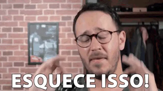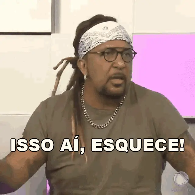 Letícia Wexell, with red hair, smiles and gestures 'forget it' with the Portuguese caption 'ESQUECE'.