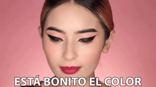 Laura Sanchez showcases a beautiful red lipstick and striking black eyeliner, highlighting the lovely color.