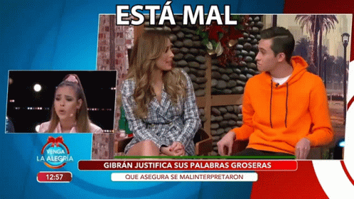 A segment from the show Venga La Alegría discussing the phrase 'Esta Mal' with Gibrán justifying his words.