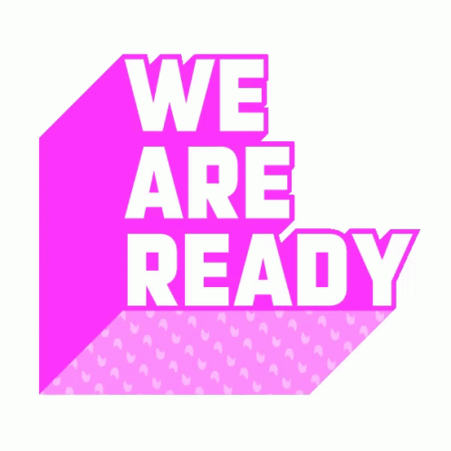 Vibrant pink and white logo displaying 'WE ARE READY' with a shadow effect, symbolizing readiness for victory.